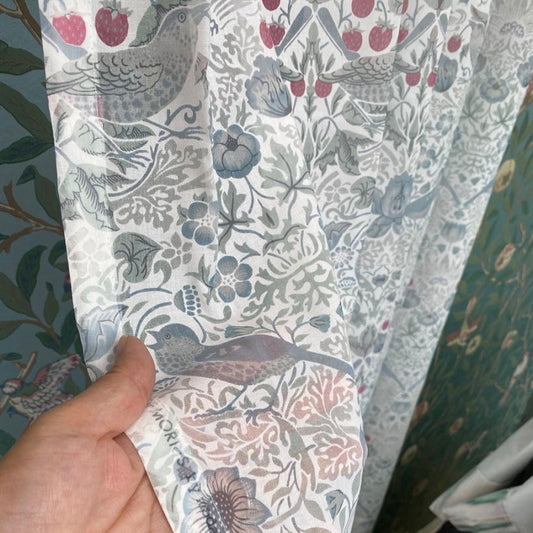 レースカーテン モリス柄 いちご泥棒 2倍ヒダ 横幅100cm×2枚 透け感 薄手 ボタニカル コットン オーダー