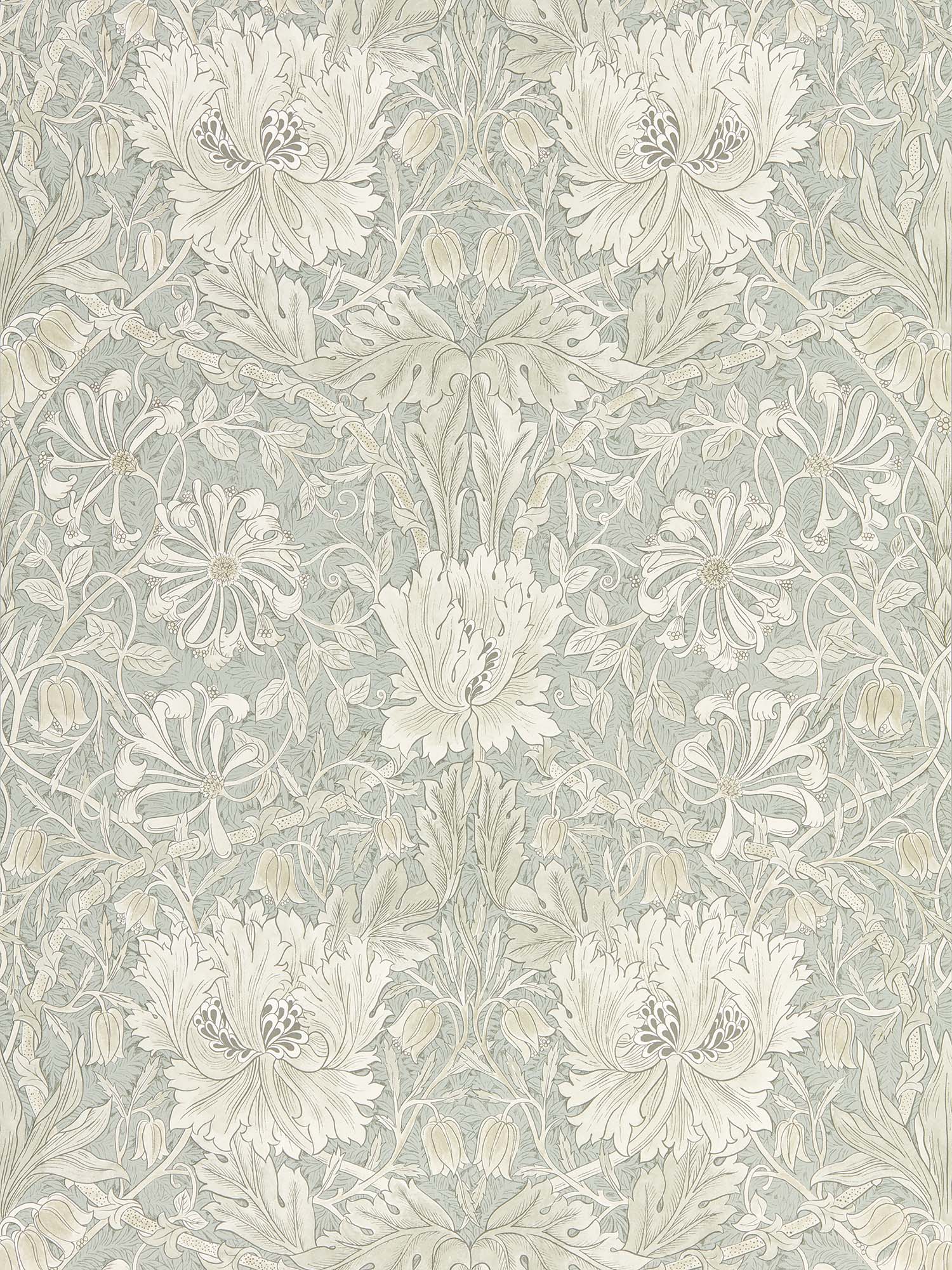1876年にデザインされたこのデザインを、マイカ(雲母)やメタリック色を使用したグラビュールプリントの壁紙に。