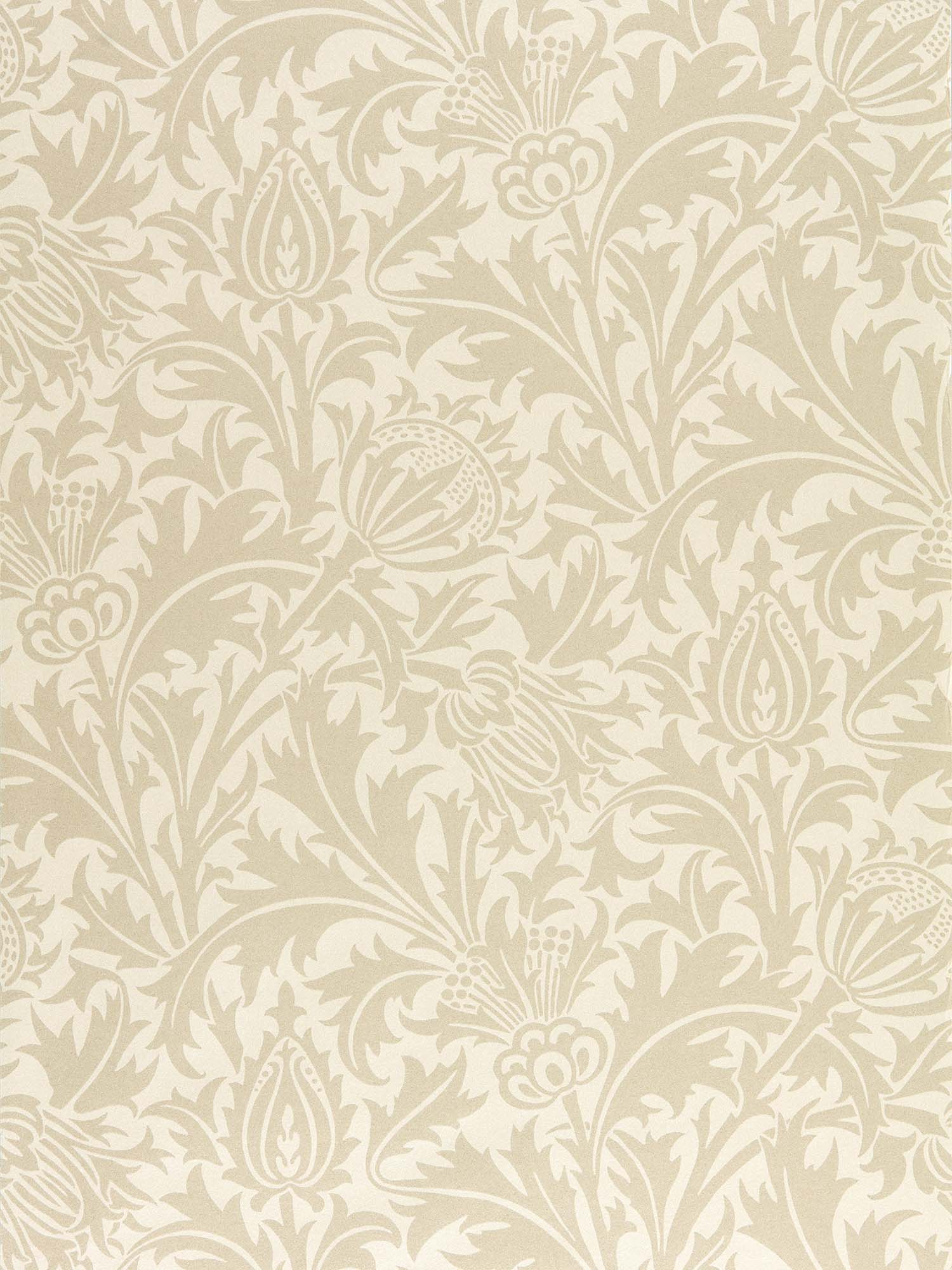 1878年にモリス商会に加わり、後に主任デザイナーとなったジョン・ヘンリー・ダールによる大柄なプリント壁紙の“Thistle”。