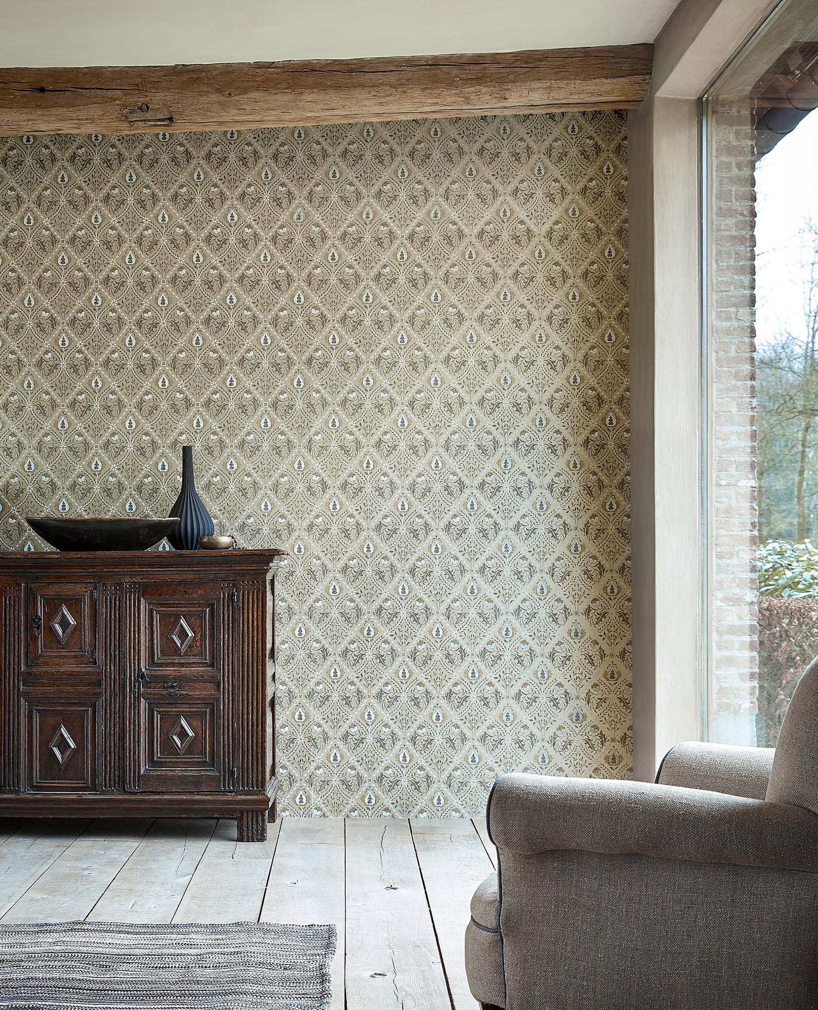 1875年デザインのブロックプリント(木版画)“Indian Diaper”からインスピレーションを受けた「Pure Trellis」。
